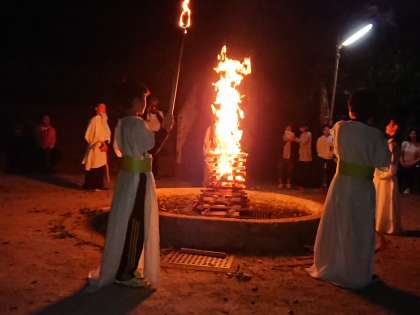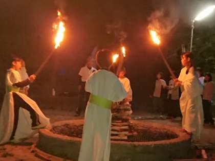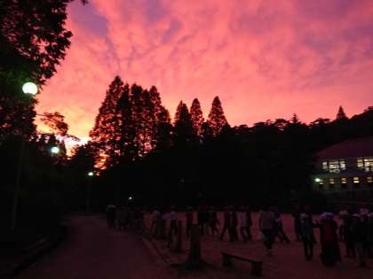 夕日が美しい中、キャンプファイヤーが始まりました。
