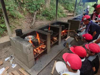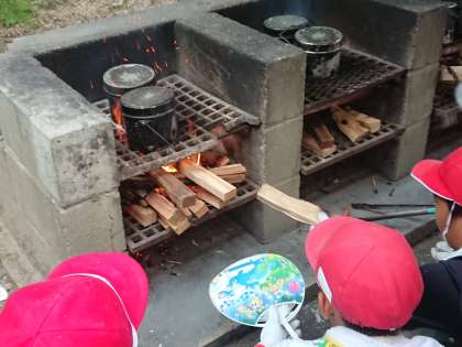 野菜を切ったり、お米をといだり、まきに火をつける係など、それぞれが自分の仕事を頑張りました。