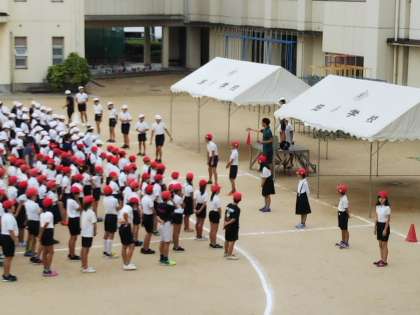 9月14日(金)朝は、体操の練習をしました。運動委員会の子どもたちが前に出て練習しました。運動委員会の子どもたちは、昼休みに集まって練習を重ね、しっかりと見本を務めました。
