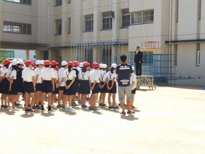 始めに校長先生から、台風のことなどのお話がありました。また、教育実習生4名の紹介があり、それぞれ自己紹介しました。