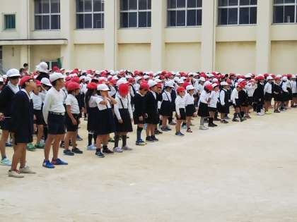 また、担当の先生から、今月の生活目標「外で元気に遊ぼう」のお話がありました。最後に、美化委員会の代表児童が、清掃活動について話をしました。