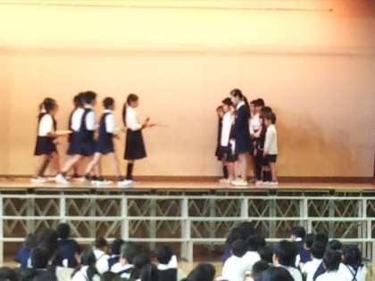 10月30日(火)、児童集会で、先日16日に行った全校遠足の表彰をしました。第三位赤色3班緑色5班、第二位緑色6班、第一位は、緑色4班でした。