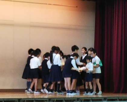 代表児童から各班の児童全員に表彰状が手渡されました。