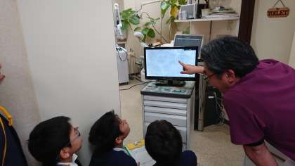 1月10日(木)の6時間目の委員会活動の時間に、健康委員会の児童が本校の歯科校医先生が開業している歯科医院へ見学に行きました。