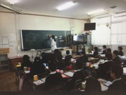 最初の30分は、各教室にて歯科衛生士さんと「フッ化物」「歯のはたらき」「むし歯の原因」「歯のみがき方」についての学習をしました。