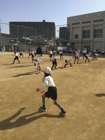 キャッチボールの仕方、Tボールのルールや球の打ち方など、丁寧に教えていただき、その後試合をしました。