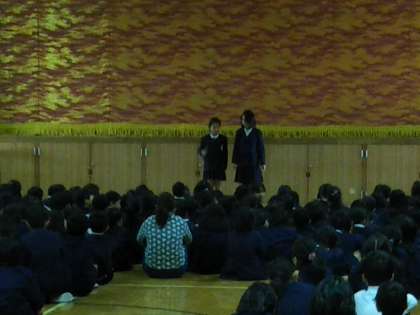 今週は美化強調週間です。美化委員会の代表児童が「学校をきれいにしましょう」と呼び掛けました。
