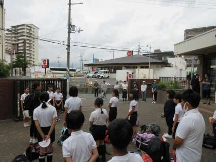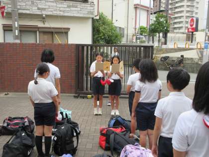 出発式を行いました。今日から1泊2日で六甲方面に行きます。