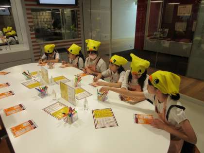 午前中は、施設の展示物を見学したあと、チキンラーメン作りをしました。