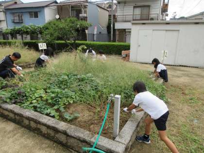 春に植えたサツマイモが順調に育っています。今日はそのまわりの雑草を取りました。