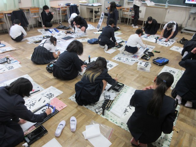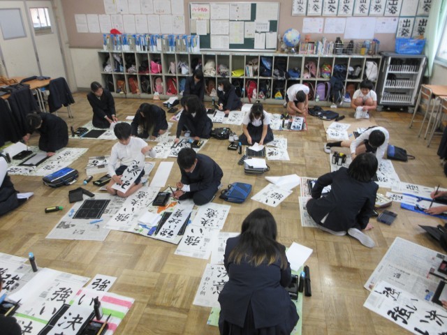 教室で書初めをしました。