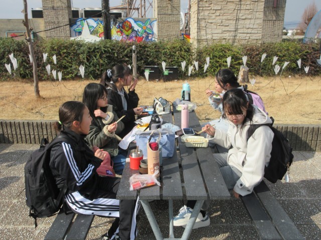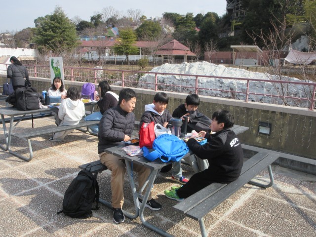 昼食も外で食べました。日光が出ていてとても暖かかったです。昼食後もグループでたくさん遊びました。