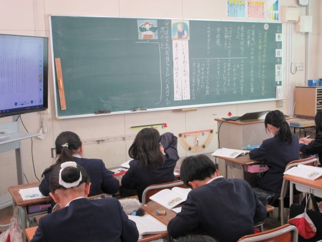 5日(木)の5時間目に3年生で国語科の研究授業を行いました。