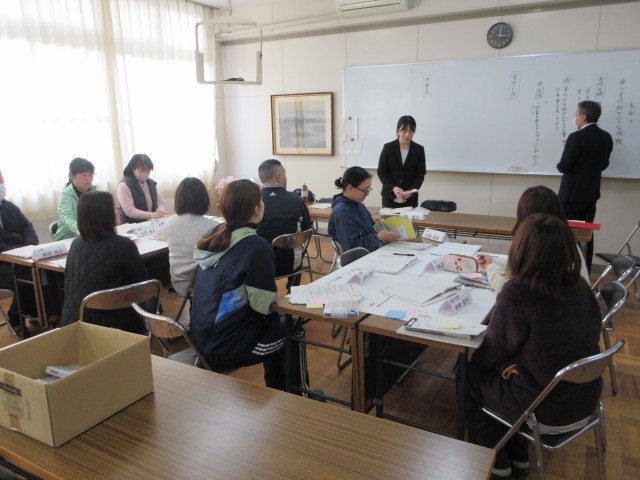 「ゆうすげ村の小さな旅館」を読み、物語のしかけを探す学習でした。文章の中から「美月」の正体がわかる言葉や出来事をたくさん見つけることができました。授業終了後、講師の先生をお招きして研究討議会を行いました。