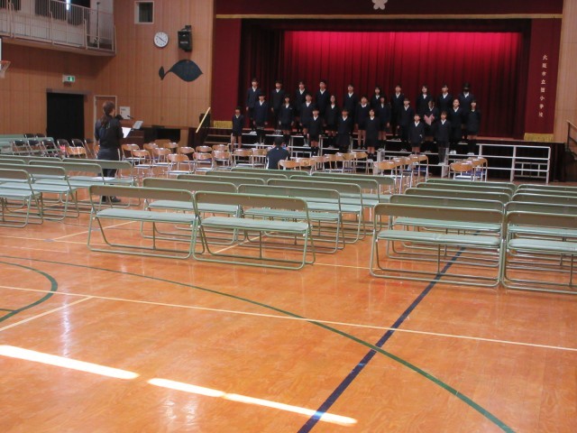 6年生は、講堂で卒業式の練習をがんばっています。