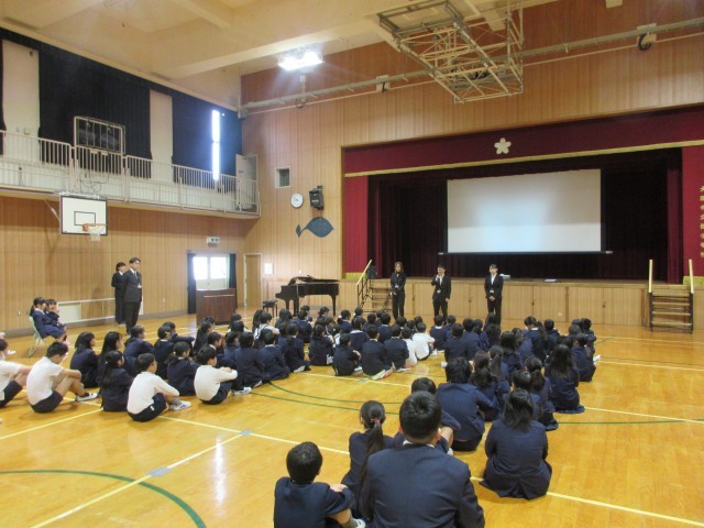 そのあと、生活指導の先生から学校のルールについての説明があり、校歌を歌って始業式が終わりました。