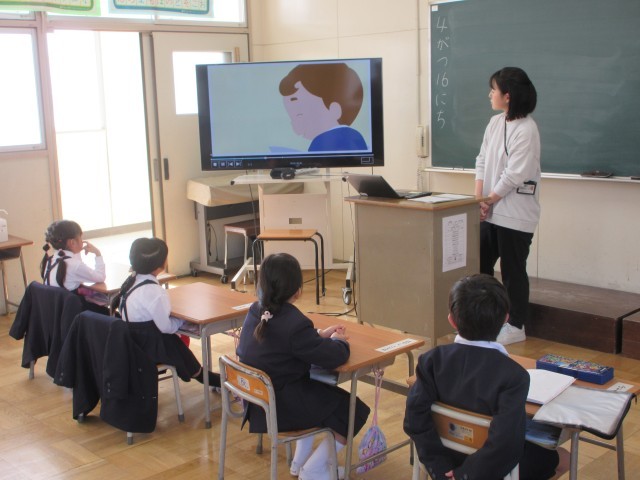 電子黒板で教材を示したり、学習端末を使って学習したり、方法はクラスで様々ですが、英語に慣れるよう、どの子も真剣に取り組んでいました。
