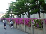 朝、登校してきたら、正門までの道路沿いのへいに、ツツジが色あざやかに咲いて、み...