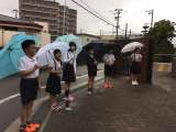 今週はあいさつ週間です。 代表委員のみんなで校門や通学路の曲がり角であいさつをし...