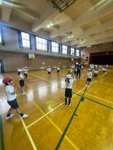 「プレルボール」というネット型ゲームをしました。 友だちに声をかけながら、楽しく...