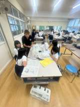 家庭科室でミシンの使い方を学習しました。 今日は、上糸のかけ方を練習しました。