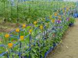 学習園では、1年生が「あさがお」、2年生は「ミニトマト」を鉢植えで育てています...