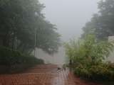 最終日の朝を迎えました。外はしっかり雨が降っています。(写真は玄関から外を撮影)