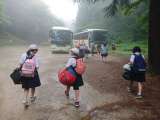 バスに乗車、宿舎を出発
