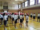 9月21日(金)、運動会に向けて最後の全体練習を行いました。あいにく雨のため、講...