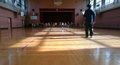 4年生以上の計画委員と、各委員会の委員長がそれぞれ自分の台詞を大きな声で行こうと取り組んでいました。