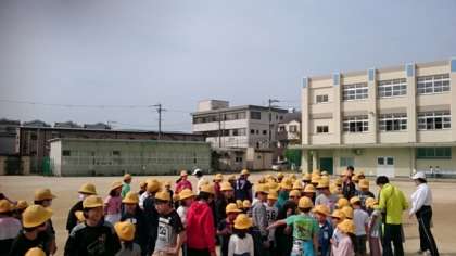 今日は全校朝会のあとに、来月からはじまるスマイル班のために1年生と6年生が班の確かめをしました。