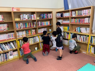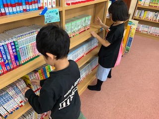 図書の時間締めくくりには、書棚の整理ボランティアをしています。