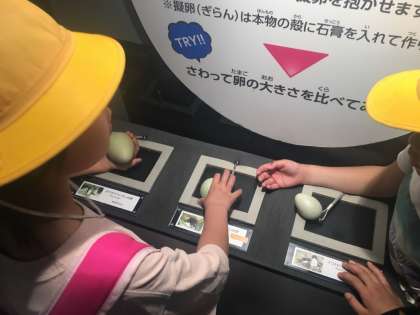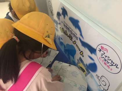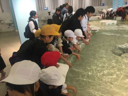 ふれあいコーナーで、えいのヒレにも触れたようです。