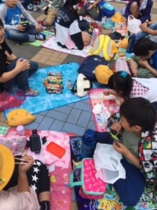 待ちに待ったお弁当の時間です。この時も3・4年生合同のグループで食事をしました。
