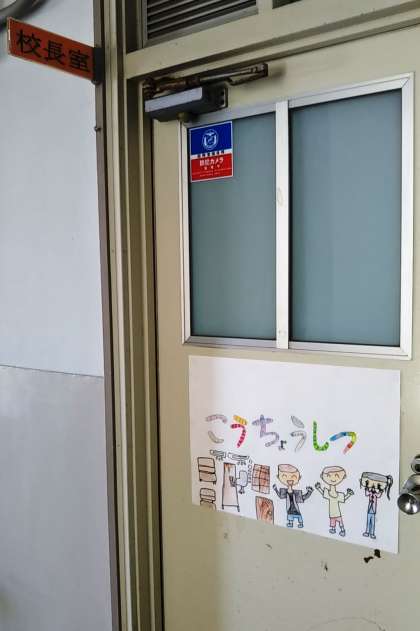 4月に1年生と2年生が学校探検をした時に、2年生が作ってくれた校長室の案内板です。校長室の扉に貼っています。とっても素敵ですね。
