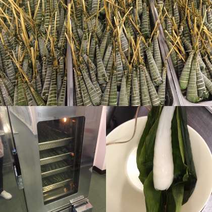 今日のちまきは、冷凍されたちまきを「焼き物機」という機械で15分間蒸します。