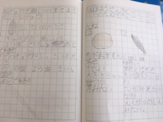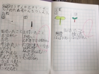 ノートに種と子葉の様子をスケッチしました。