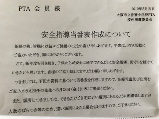 こちらの紙をもとに当番表を作成いたします。