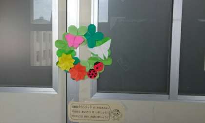 図書室の前でかわいいテントウムシが迎えてくれています。