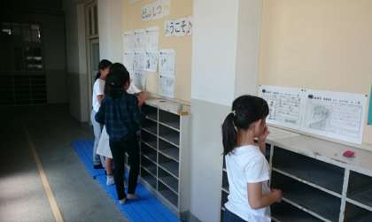 図書委員会では、図書室にある本の中から1人1冊おすすめの本を選び、紹介のポスターをかいたものを図書室の外に掲示しました。