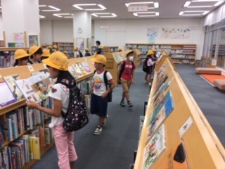 絵本コーナーや児童向けの本コーナー中心に、自由行動をして見学しました。