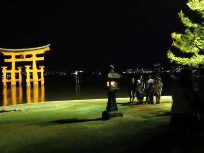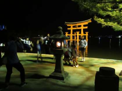 食後に厳島神社の鳥居が見える場所まで散策しました。