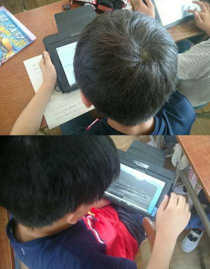 活動班のタブレット係が撮った写真を活用したり、学校ホームページの写真を使ったり、工夫して作成を進めています。