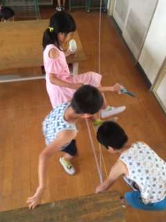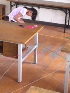 「ひもに当たらないようにまたいだりくぐったりしよう」