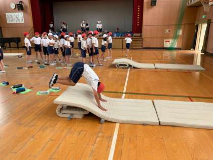 「補助倒立」「飛び込み前転」