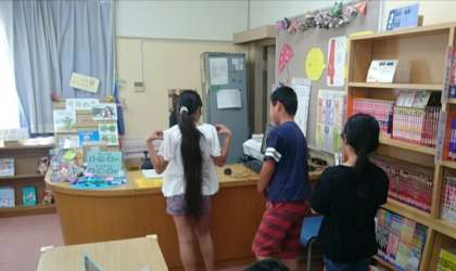 最近は、晴れた日の図書室も、たくさんの子どもが足を運ぶようになっています。今日も貸し出し返却にやってきた子が、列を作っていました。