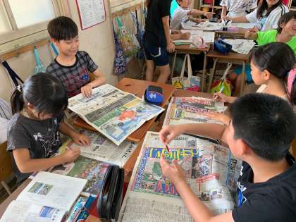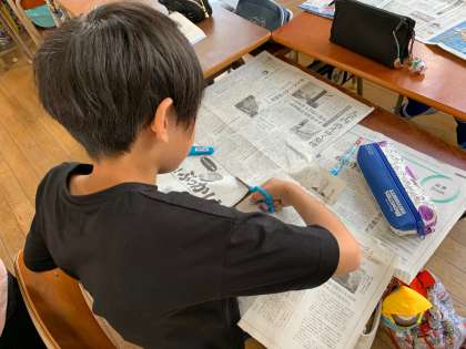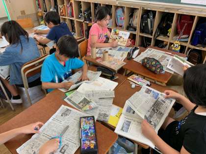 子どもたちのご家庭から新聞を持ってきてもらい、