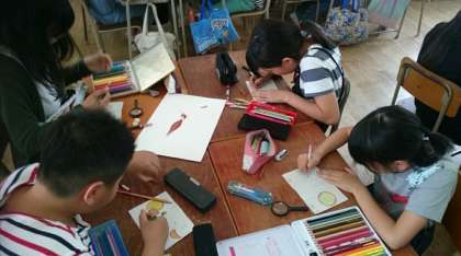 5・6時間目、根、茎、葉を班ごとに切り分け、水がどこを通ったのかを観察し、スケッチしました。茎は、横から観察した後にハサミで縦に切り、茎のどこを通っているのかを、さらに詳しく観察しました。