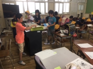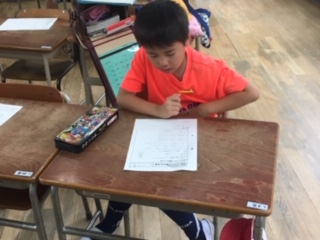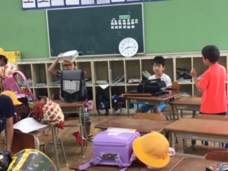 教室へ入ると、ランドセルを開けて宿題を提出します。
