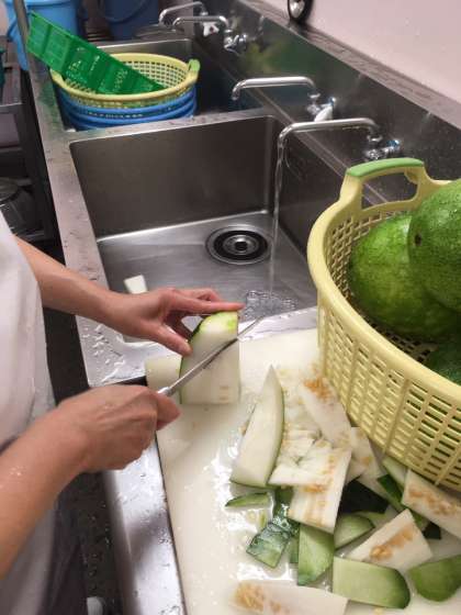 この夏の7月〜9月にかけておいしい時期(旬)となる冬瓜(とうがん)が給食で今年初めて登場しました。